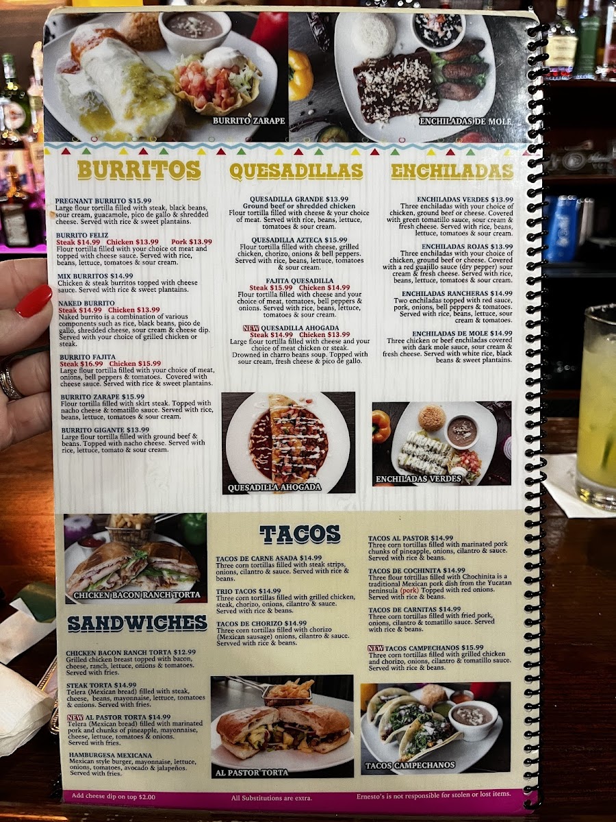 Looking for bold, flavorful dishes that transport you straight to Mexico? The Ernestos Mexican Cuisine Menu has something for everyone, whether you're craving something classic or a bit more adventurous. Nestled at 117 E Main St in La Grange, KY, this spot offers a range of delicious Mexican staples, from sizzling fajitas and mouth-watering enchiladas to the perfect taco and rich, savory guacamole.