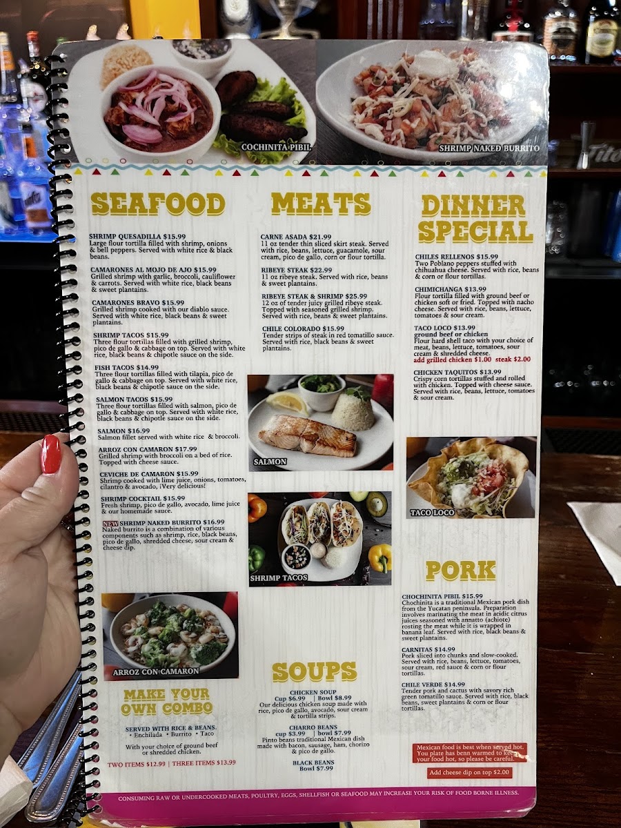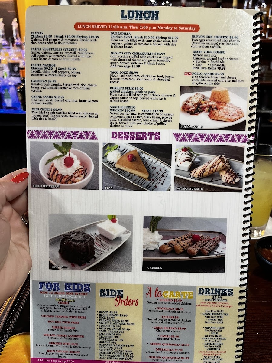 You’ll find all your favorites here, prepared with fresh ingredients and authentic flavors. Each dish is a burst of color, taste, and tradition, crafted to satisfy both your hunger and your cravings. Pair your meal with a refreshing margarita or a cold cerveza to elevate the experience. Whether you’re dining in with friends or grabbing a quick bite, the menu offers comfort and excitement all in one.